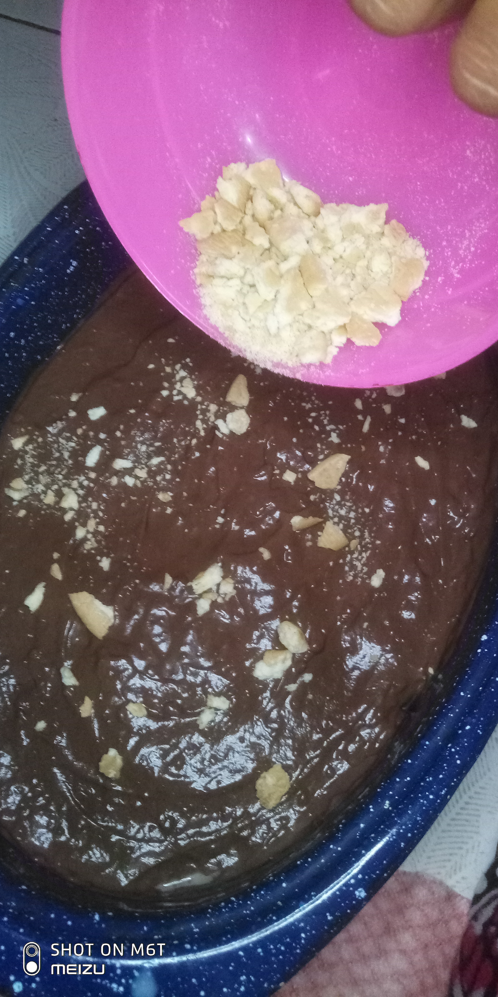 Yo como decoración, triture un poco de galleta y lo coloque en la parte de encima de la marquesa y también ralle un poco de chocolate en barra. Y colocamos en el refrigerador por un día completo, hasta que cuaje y cuando este listo, ¡A comer! Yummy