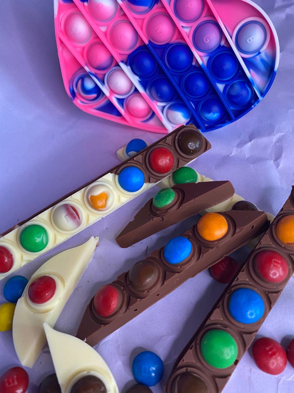POP-IT chocolateforever-gala (66)in SteemFoods • 5 years ago POP-IT Popular chocolate using pop it Ingredients: M&M's Two types of chocolate white and black Preparation: Add M&M's to pop-it Melt the chocolate and fill it with sweets Put in the refrigerator for 20 minutes Funny chocolate ready to eat #steemfood #recipe #recipes #food #popit