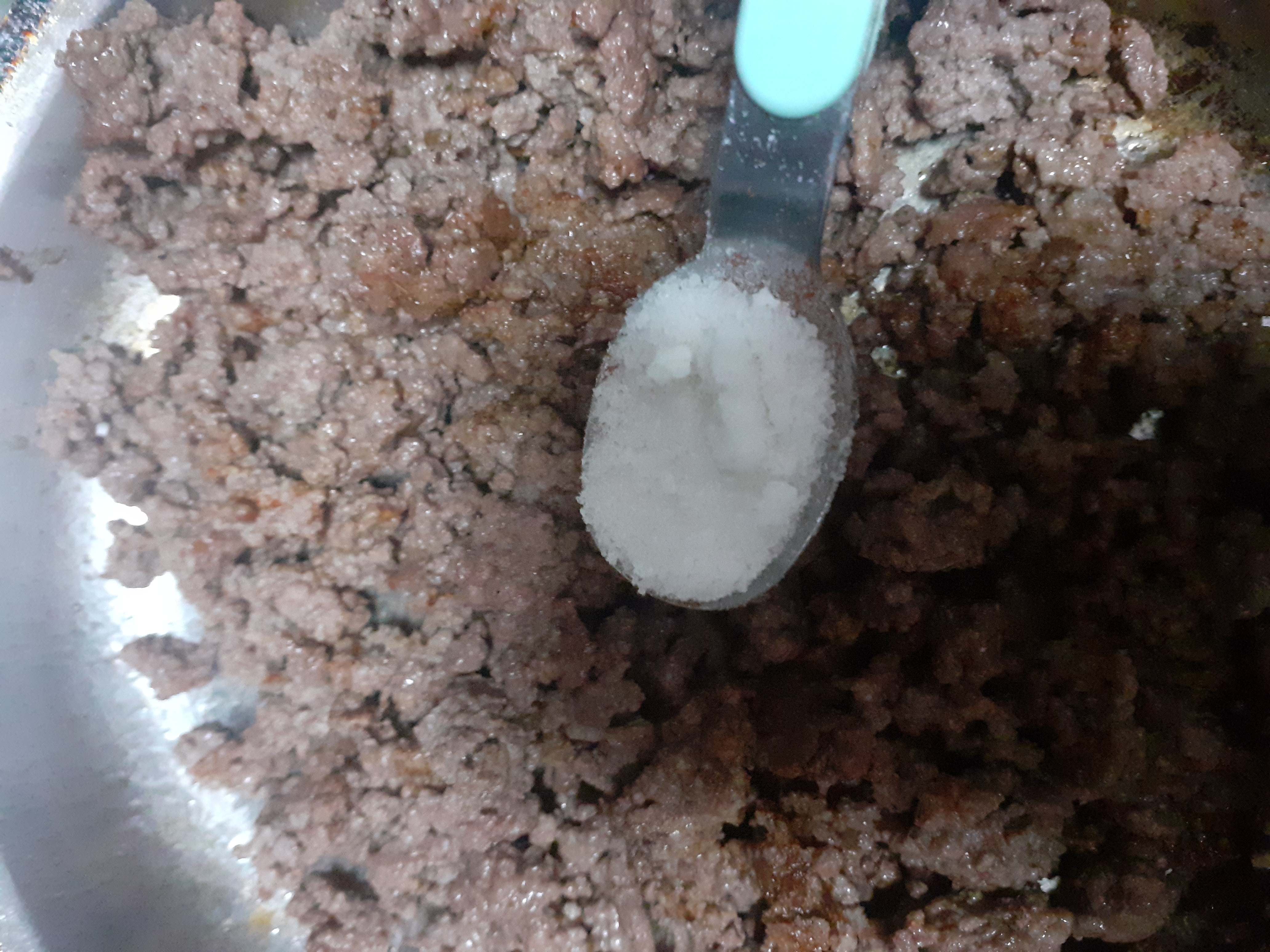 5 Paso: Sofreír la carne y colocar los condimentos.