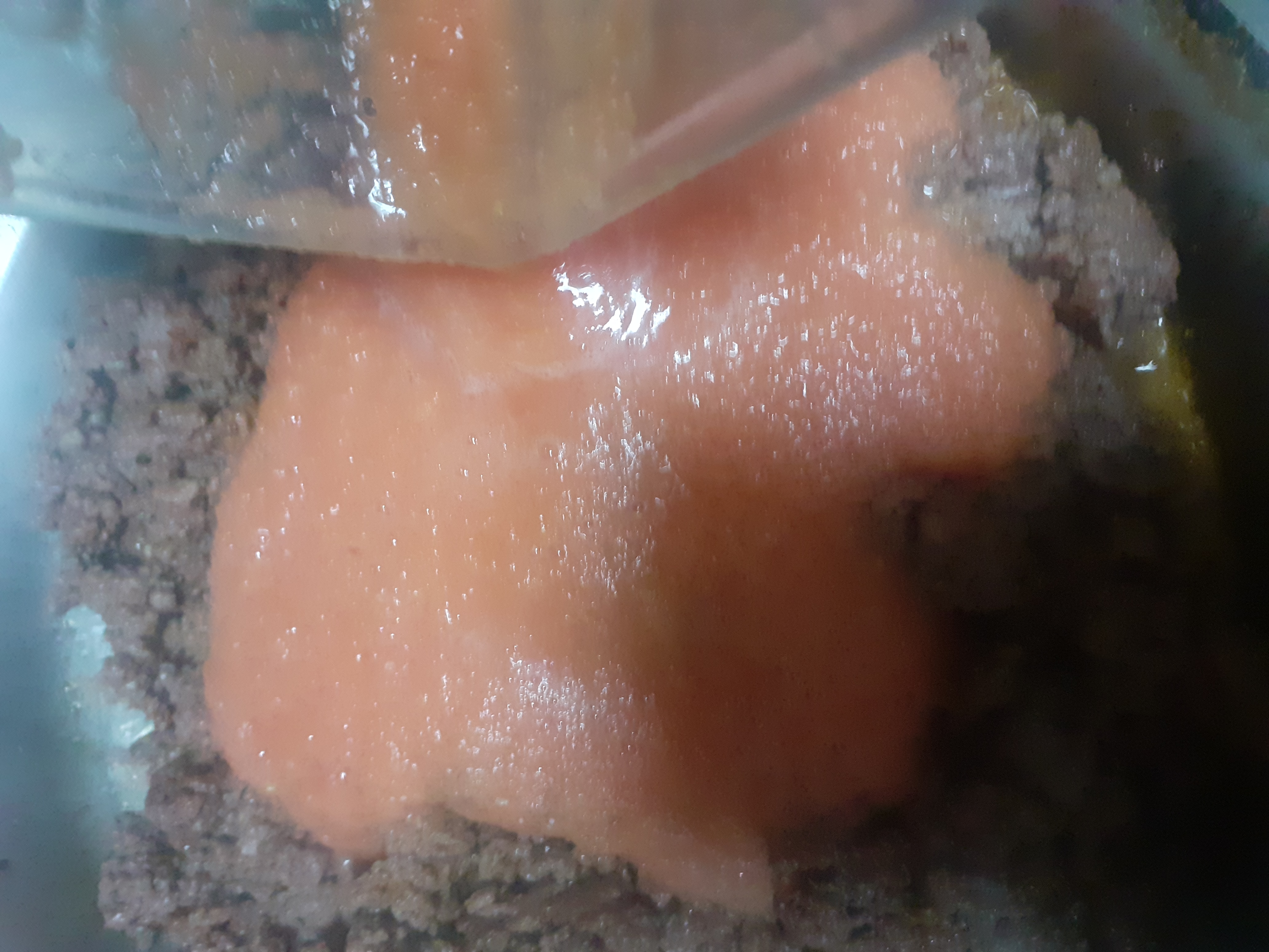 6 Paso: Colocar en el sofrito la salsa que licuamos anteriormente y cocinar a fuego lento.