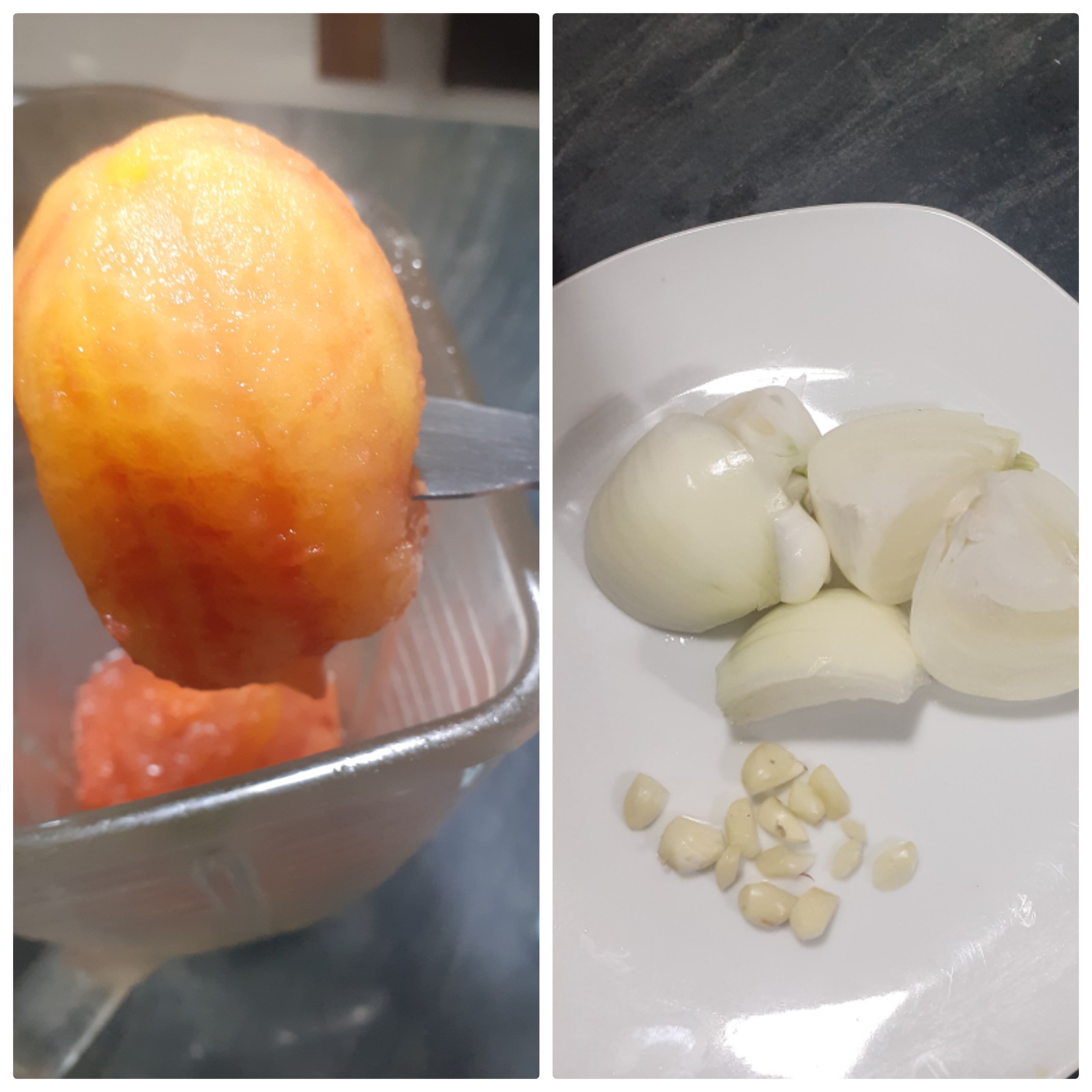 3 Paso: Licuar los tomates, la cebolla y los dientes de ajo.