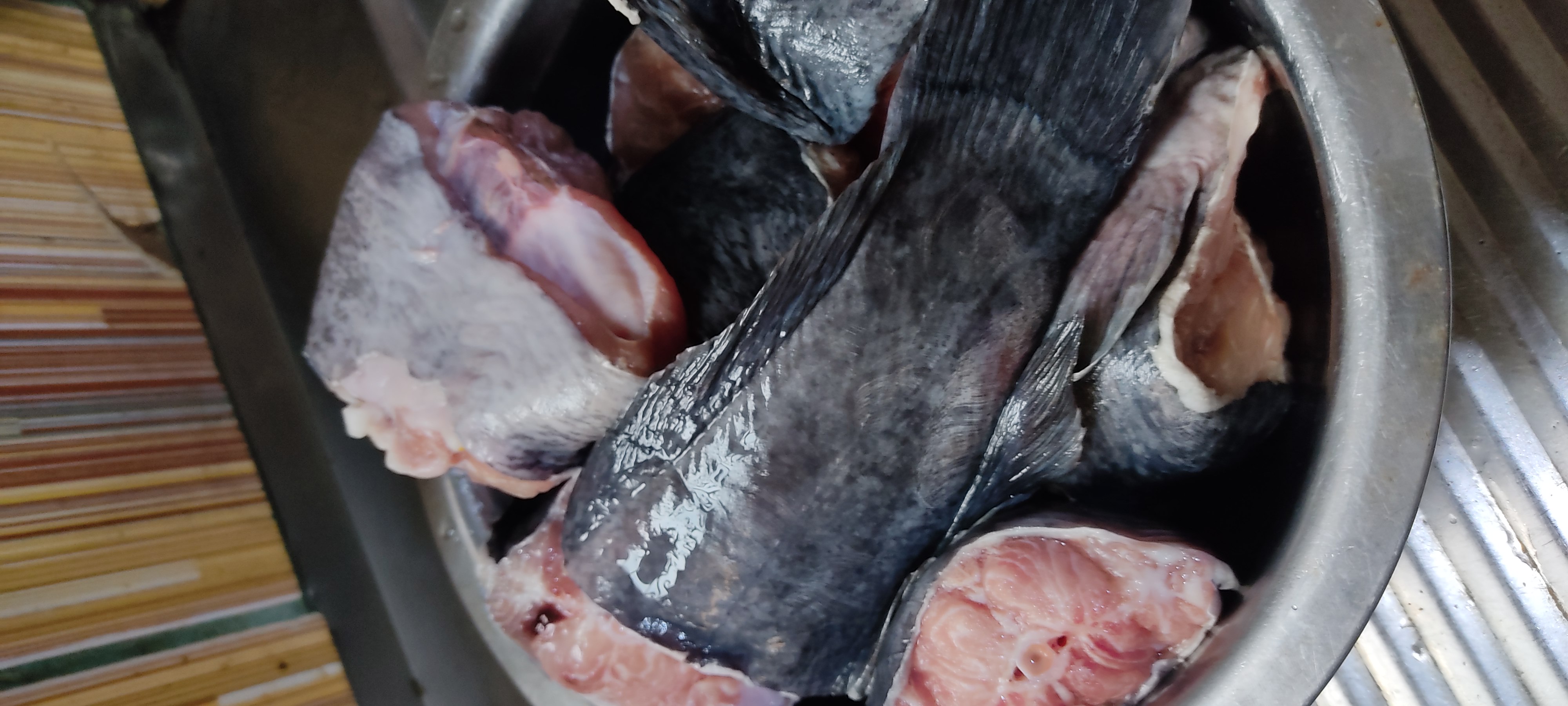 *First I washed the fresh catfish thoroughly to get rid of the slime, once that was done I put them in a cooking pot added pepper, 2cubes of Knorr Maggi, salt and onions. I poured in my blended habanero pepper to serve as water; it was more of water content (watery) and placed the cooking pot on a gas cooker to cook on a low heat for 20mins.