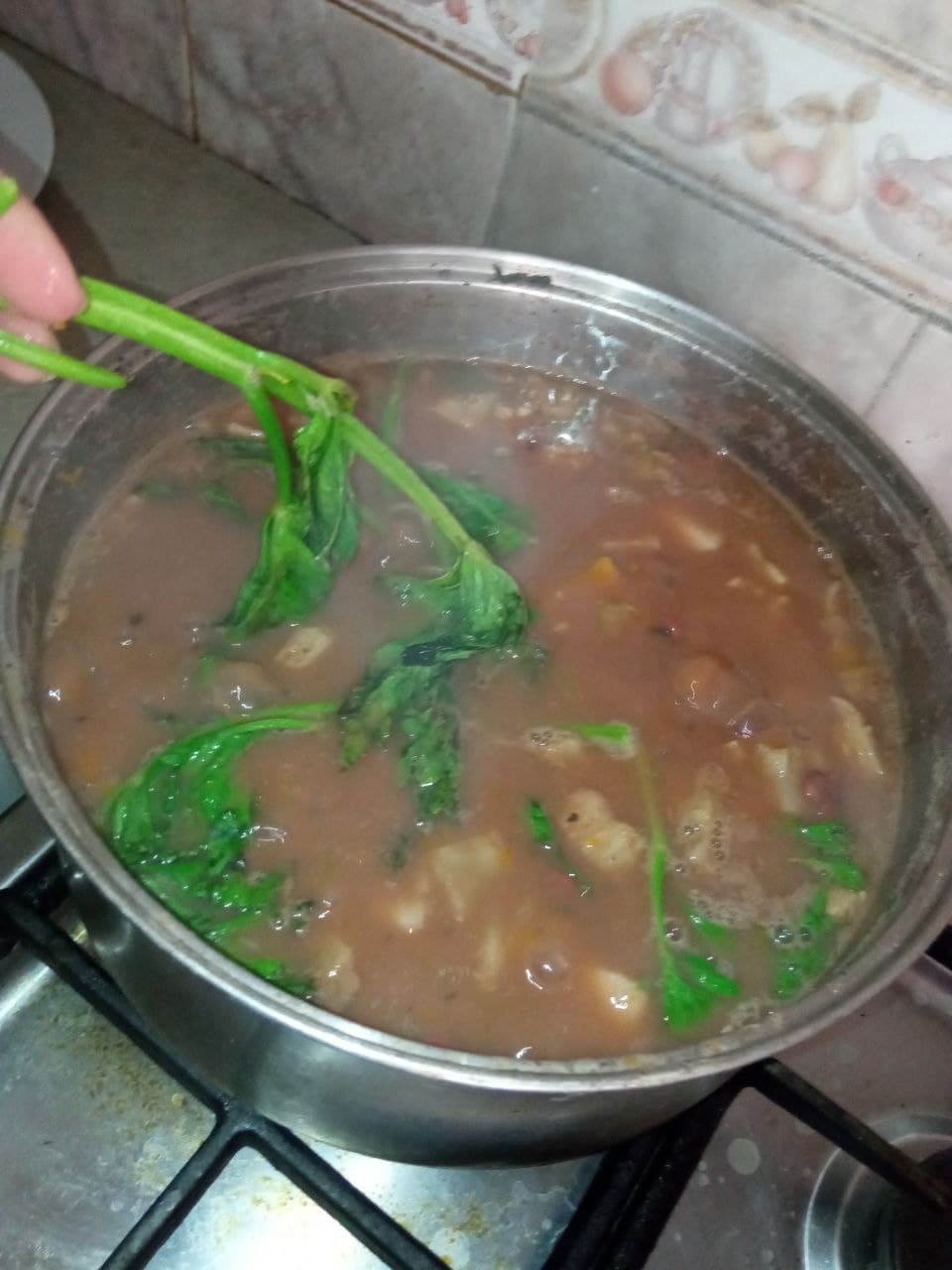 - Esperamos aproximadamente 15 minutos para agregar una rama de cilantro y dejamos cocinar otros minutos más.