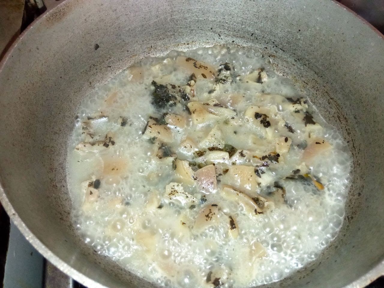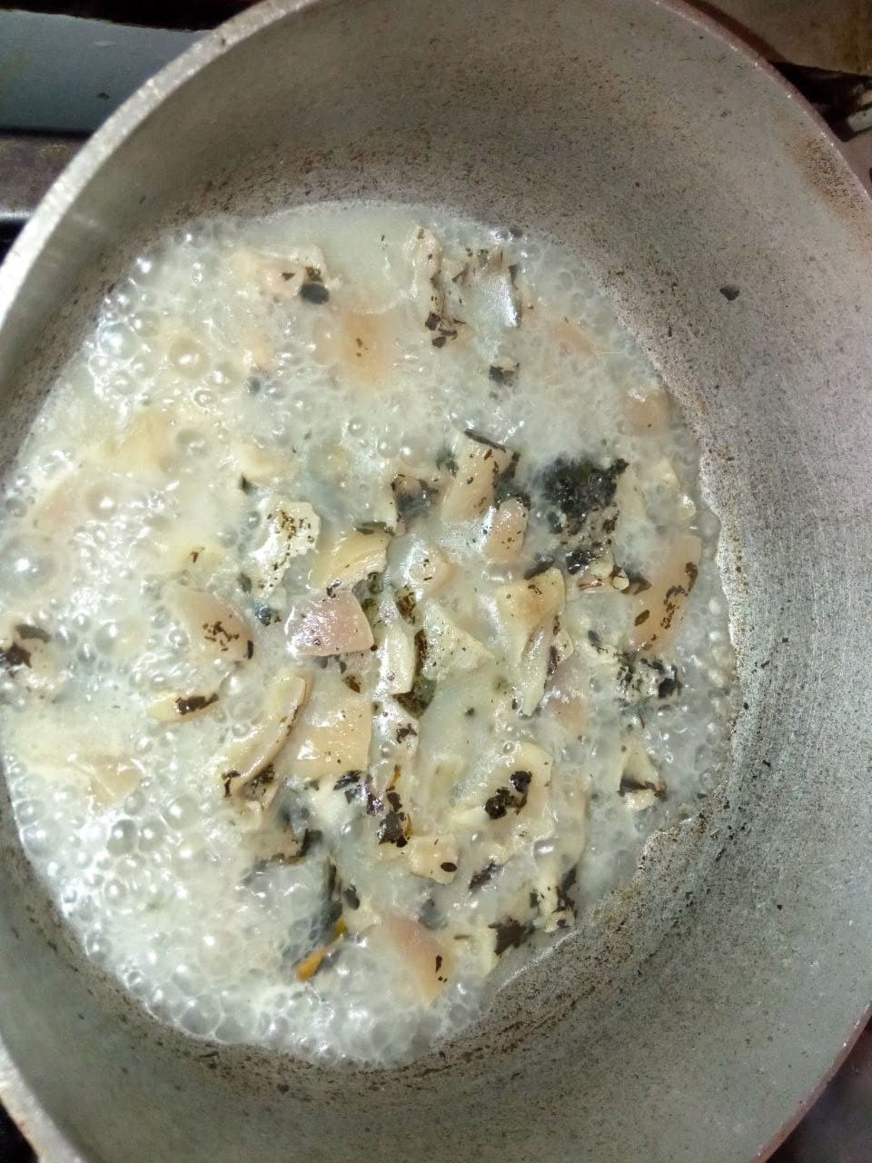 - When the water that we put to the skins is evaporating we add the seasonings that we chopped previously, we also season with salt, adobo or sauces of our preference. Then we wait for it to dry completely.