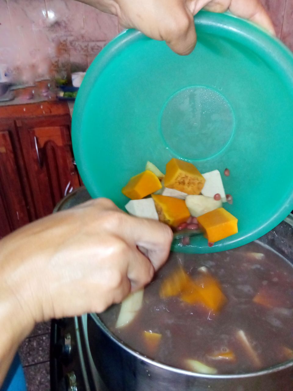 - Pasada la hora, o cuando las caraotas estén flojas procedemos a agregar las verduras ya limpias y picadas del tamaño de nuestra preferencia, mientras más pequeñas más rápido se van a ablandar.