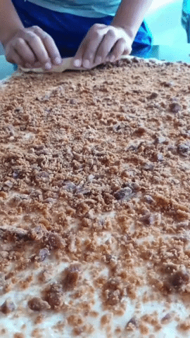 Comenzamos a enrollar poco a poco sin apretar mucho, luego picamos en porciones iguales, para disponerlas en una bandeja enmantequillada y dejar reposar una hora más, para que la levadura haga su magia.