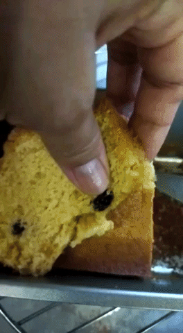 After breakfast, I continued working and stopped at 2 p.m. for a 2 hour recess. I took this time to make a quick vanilla cake with orange and raisins.