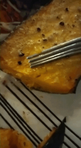 Then I baked I baby pumpkin. I rubbed it with butter, added salt and pepper and let it bake at 300 degrees F x one hour.