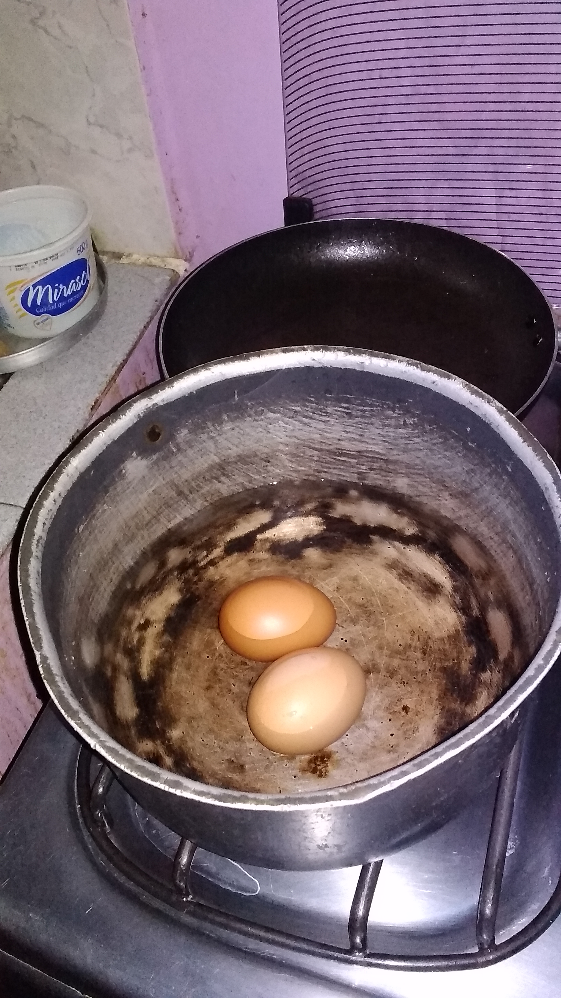 Paso 1: Se coloca una olla y se llena de agua se espera a que esta, este caliente. en este punto se procede a colocar los huevos a cocinar.
