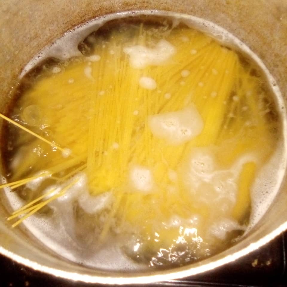 I started with boiling my spaghetti Al dente for 5 minutes in hot water.