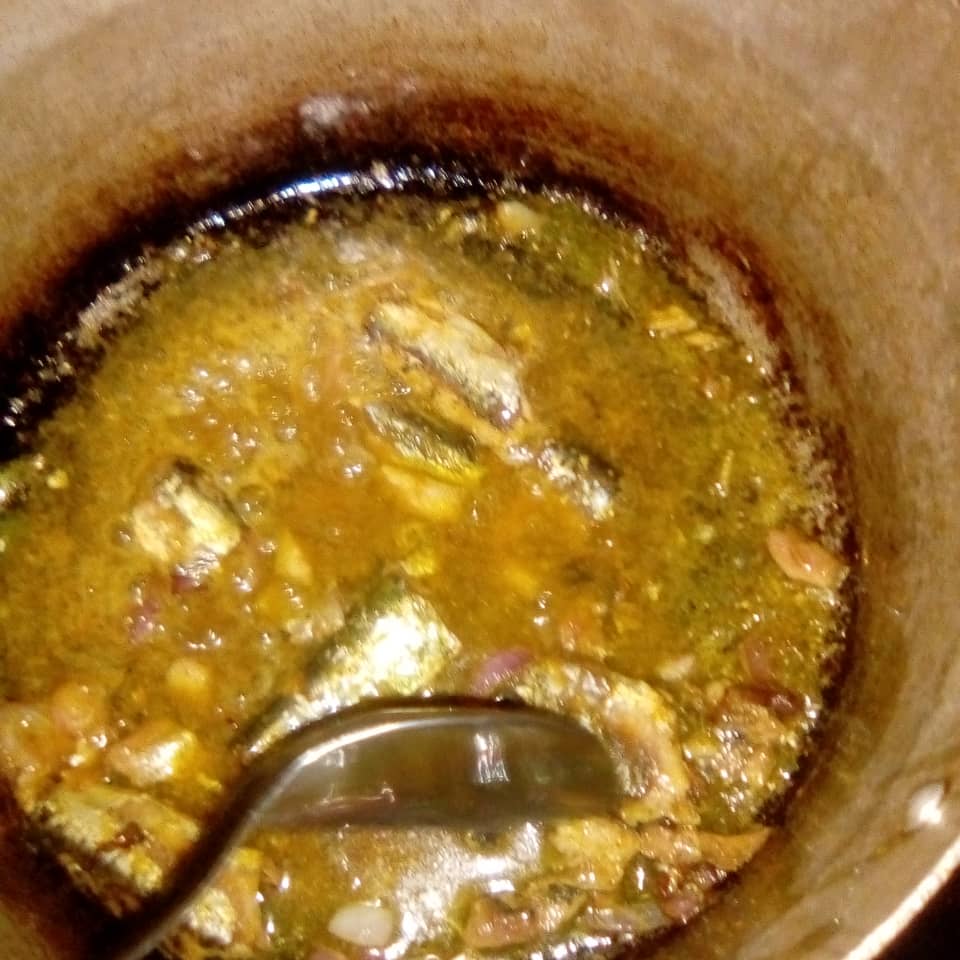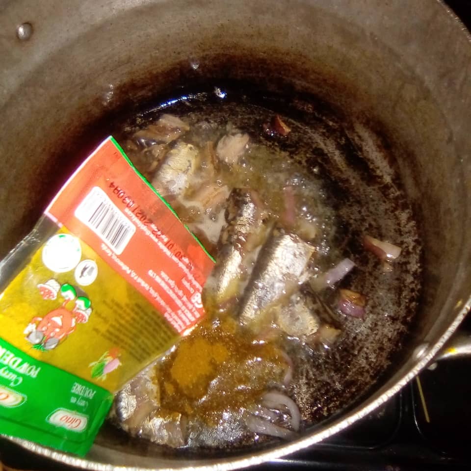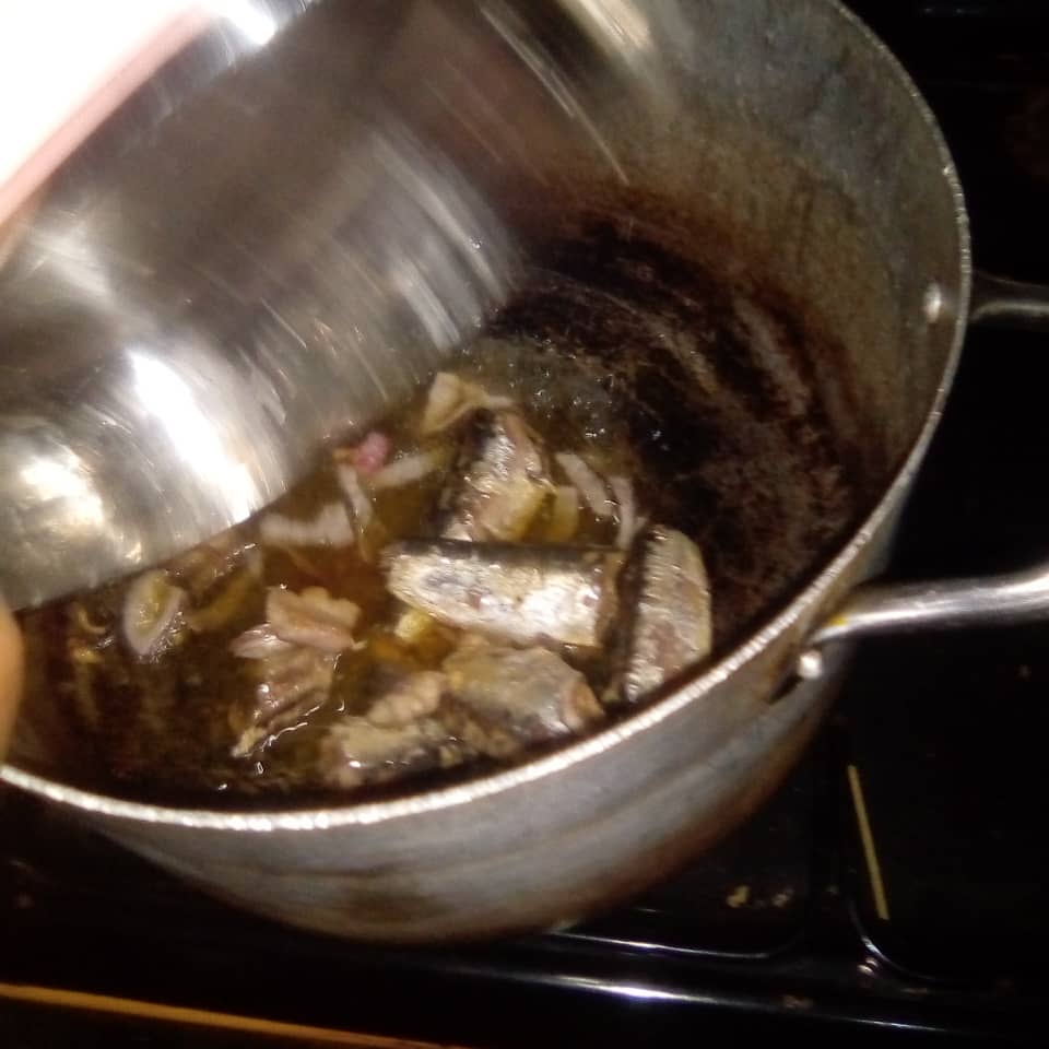 I fried the onions until it was caramelized then I added the canned sardines.