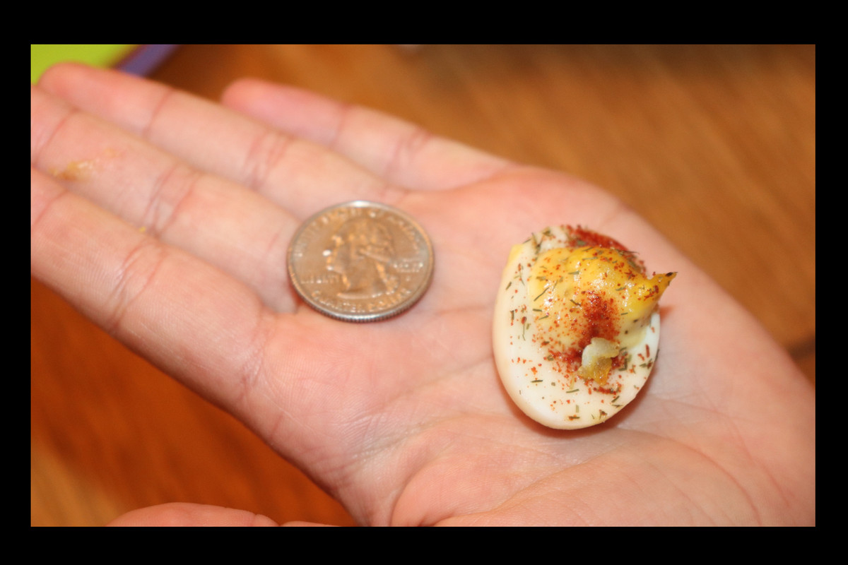 It's interesting to see a like get creative, and to like to create. In many ways, making these stuffed eggs can be a rather tedious task. To make them out of quail eggs is even trickier, because they are so much smaller. This was Pinkie-Pepper's idea, and what a great idea it was.