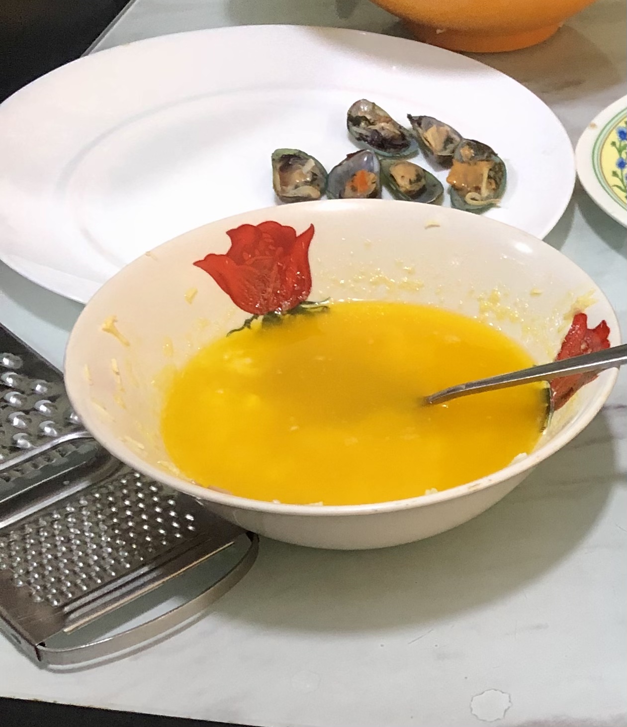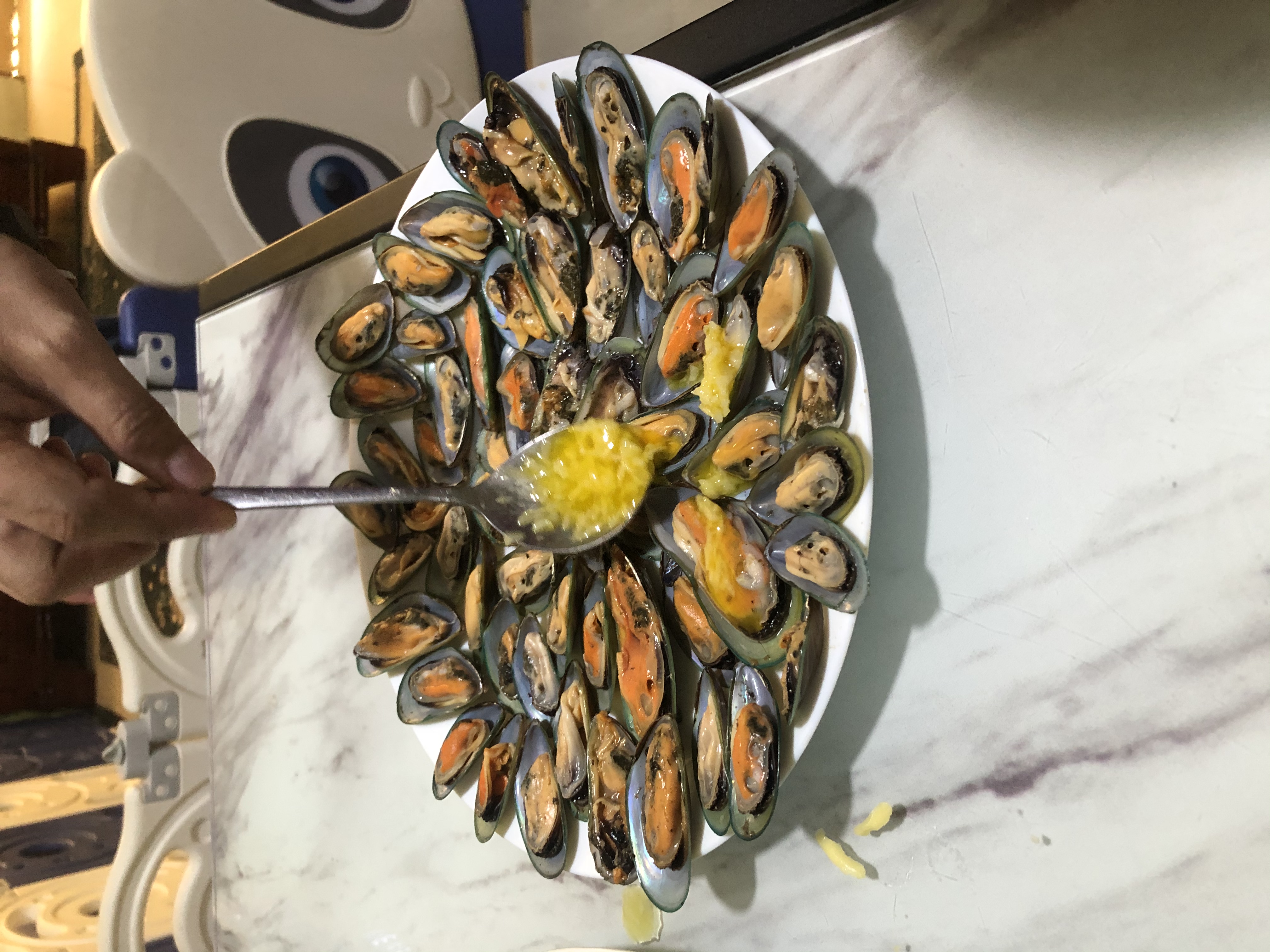 Step 4 - Mix the Butter and Garlic, Gently coat it on top of the mussels, for this one I used spoon.