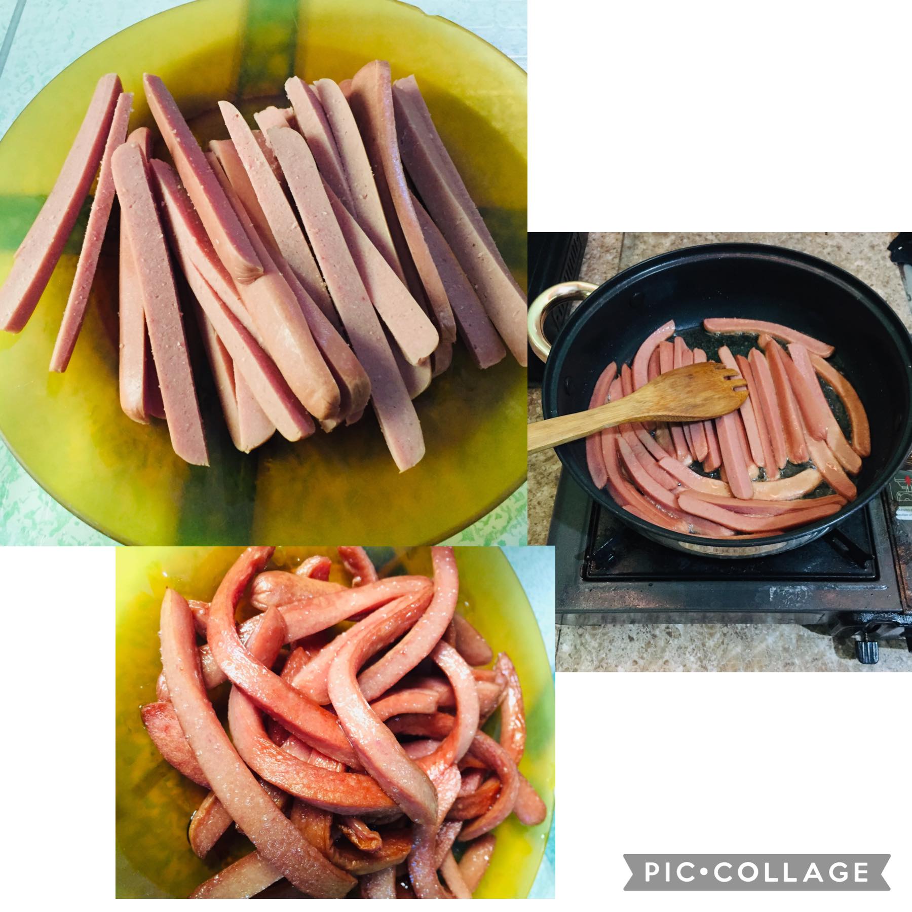 Slice your hotdog lengthwise, fry it in 3-5 minutes and set it aside to let it cool.