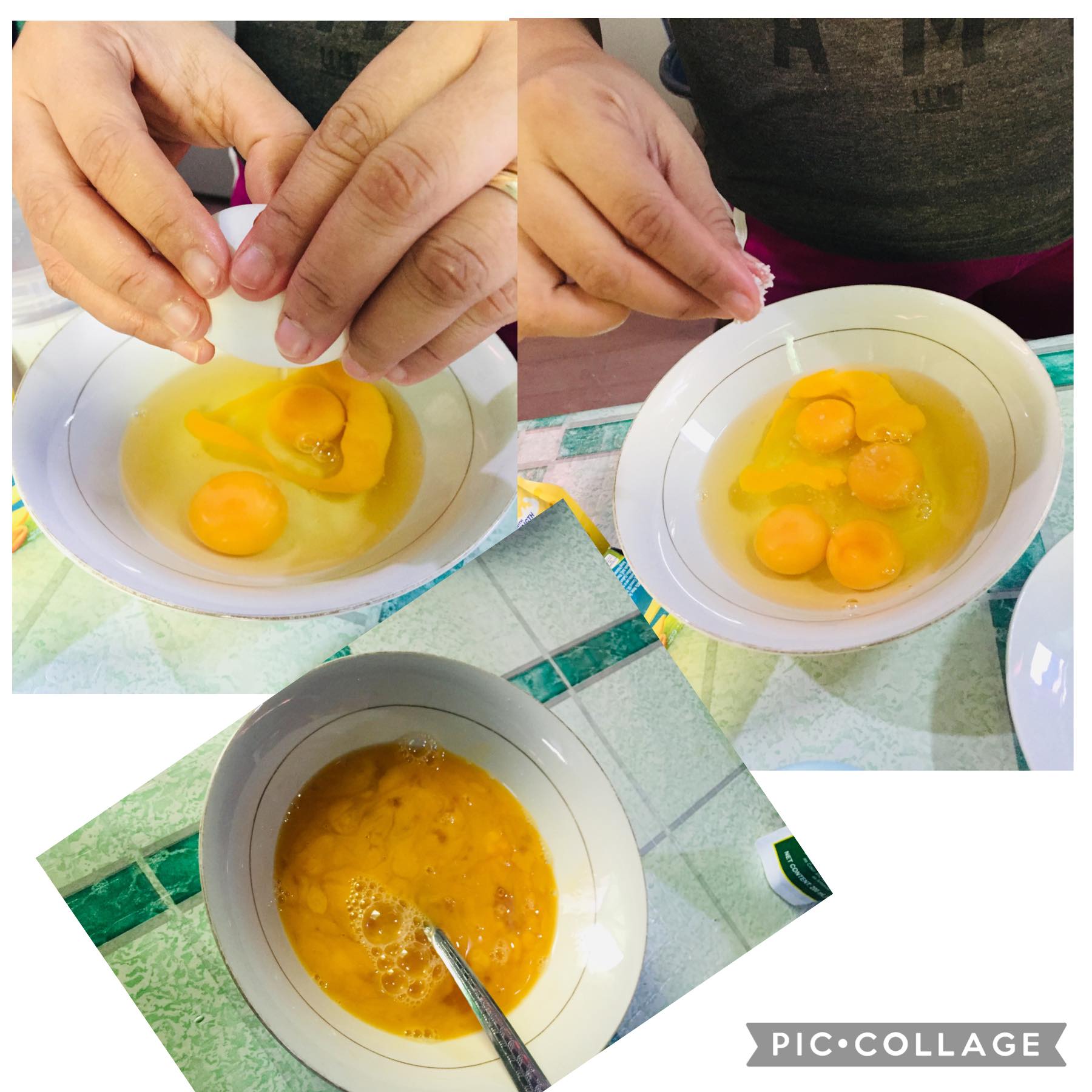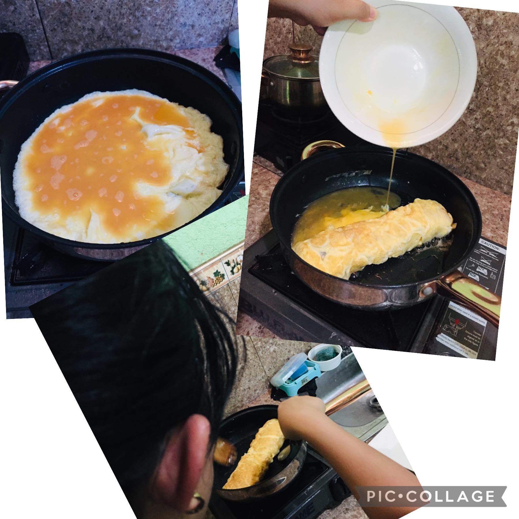 Preheat the pan, add oil, and gradually pour in the egg.
