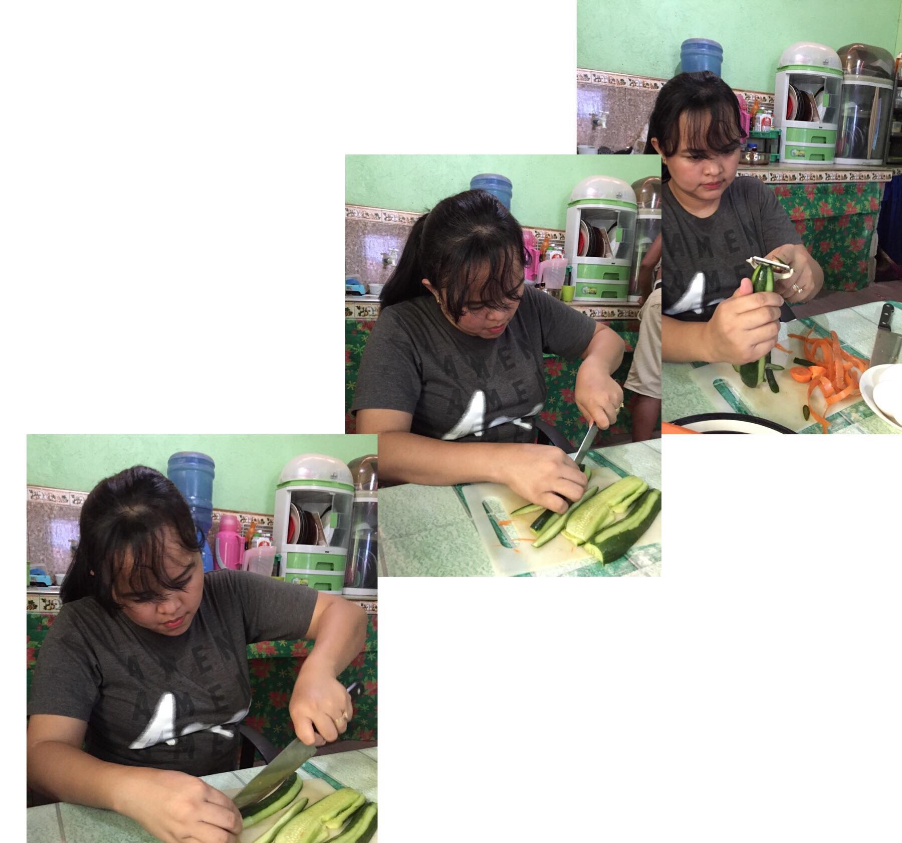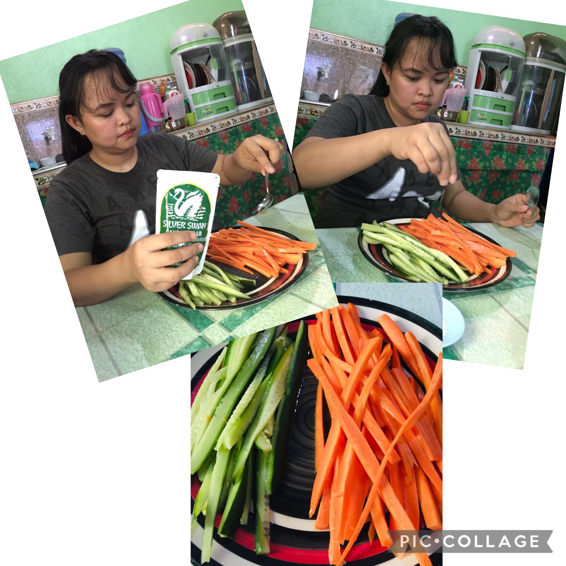 Soak your sliced cucumber and carrot using 2 tablespoon vinegar and 1/4 teaspoon salt then set it aside.