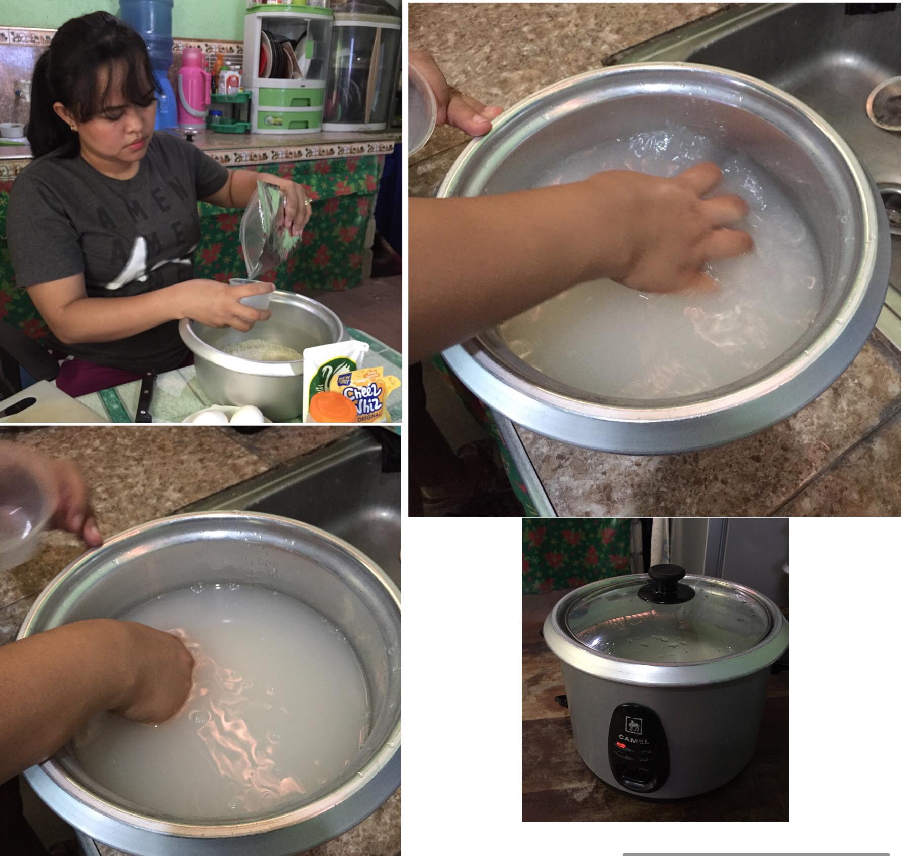 Pour your rice into your cooking pot, rinse it with water 2-3 times, then let it cook.