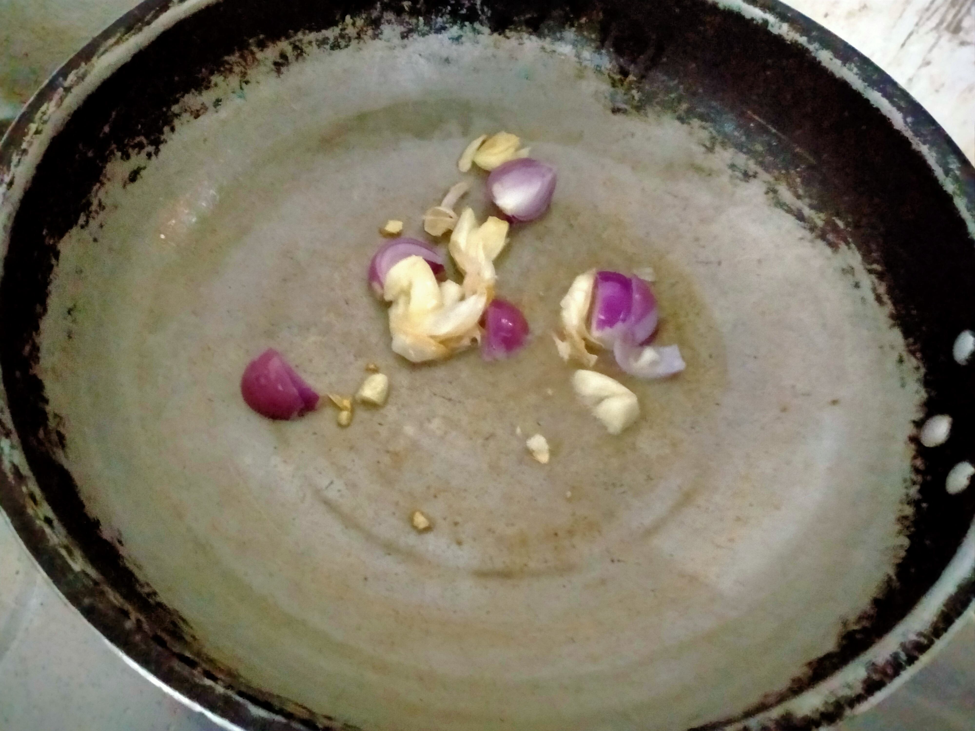 - First, heat oil in the pot, then after 2-3 minutes if the oil is already hot, saute the onion and the garlic until golden brown.