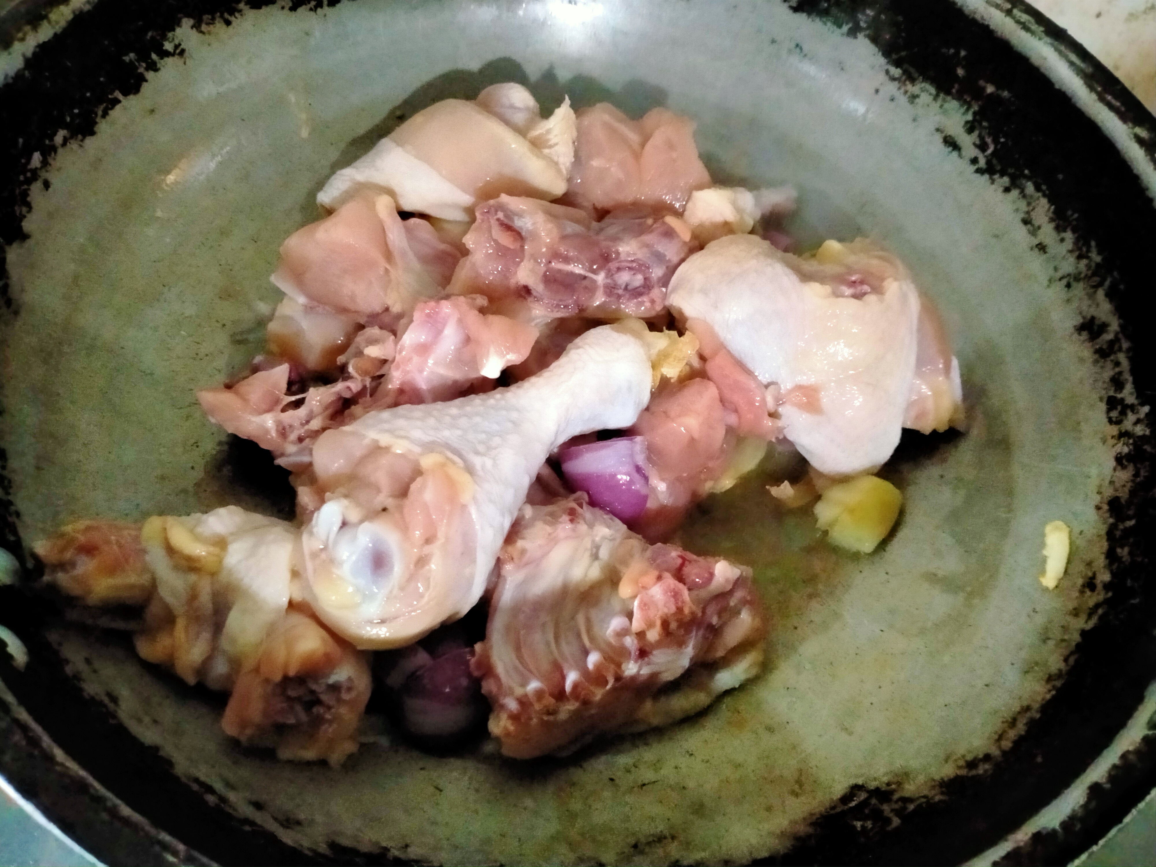 - Now, let's put the chicken and sear it for 5 to 10 minutes. And after that, put the soy sauce 1/4 of the sachet and mix until the meat of the chicken will absorb it. Remember that the quantity of the soy sauce will depend on the quantity of the chicken you have.