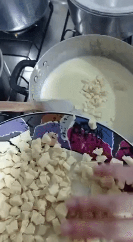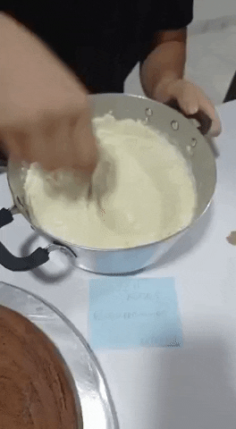 After everything is mixed, bring it to a low heat and add the butter and white chocolate in pieces