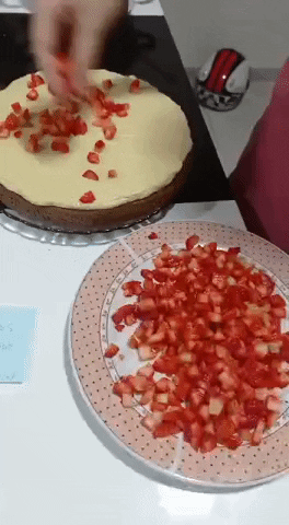 After filling, add chopped strawberries
