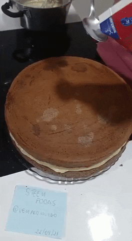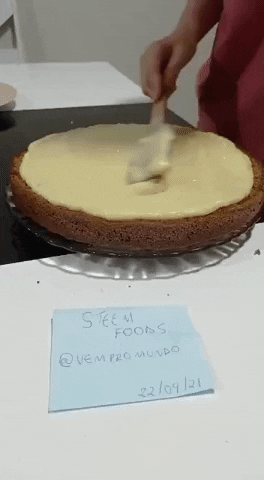 Pour the filling into the cake and spread