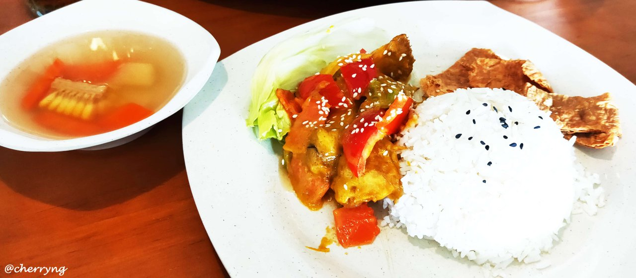 In Week #93 of the @steemfoodtours contest, @cherryng was back with a trip to Pure Minded Vegetarian Cafe in Johor, Malaysia. Here @cherryng enjoyed some veggie dishes including the Dried Chili Lion's Mane Mushrooms served with white rice as seen in the photo above. With this entry, @cherryng will take home the 1st place prize in @steemfoodtours #93.