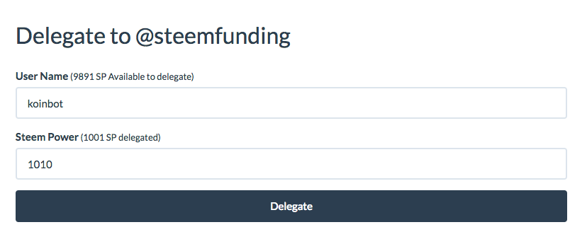 minimum : 10SP ~you can using our web site : https://koinbot.org/#/steem/funding