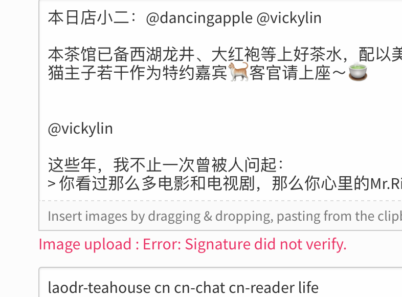 Q:这是我在上周发布laodr茶馆帖子时候遇到的问题,后来在翻译组中看到@bring在发布cn-reader帖子的时候也遇到了。目前,我们还未知该情况的出现,是否和laodr和cn-reader都是授权账户(我们用自己的posting key登陆该账号)有关。
