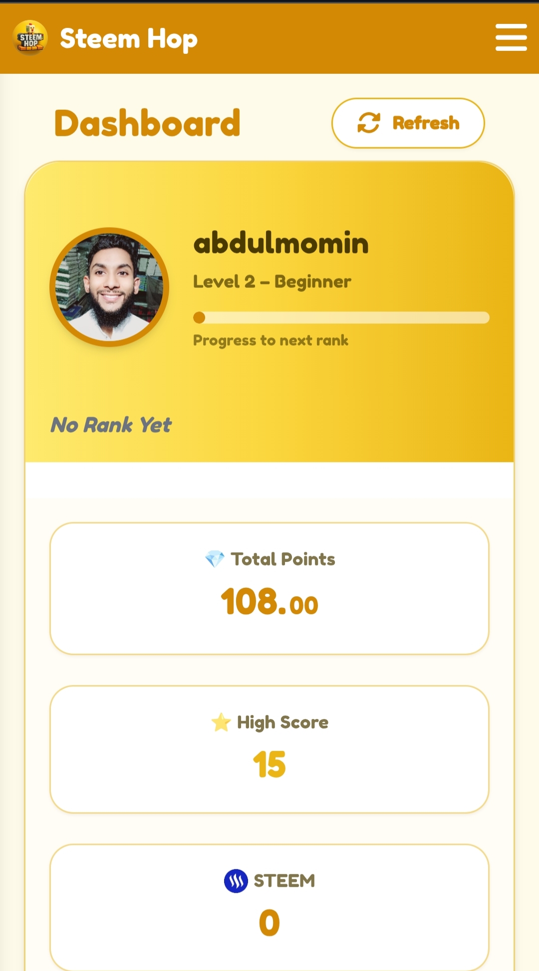 First and new experience playing Steemhop game.