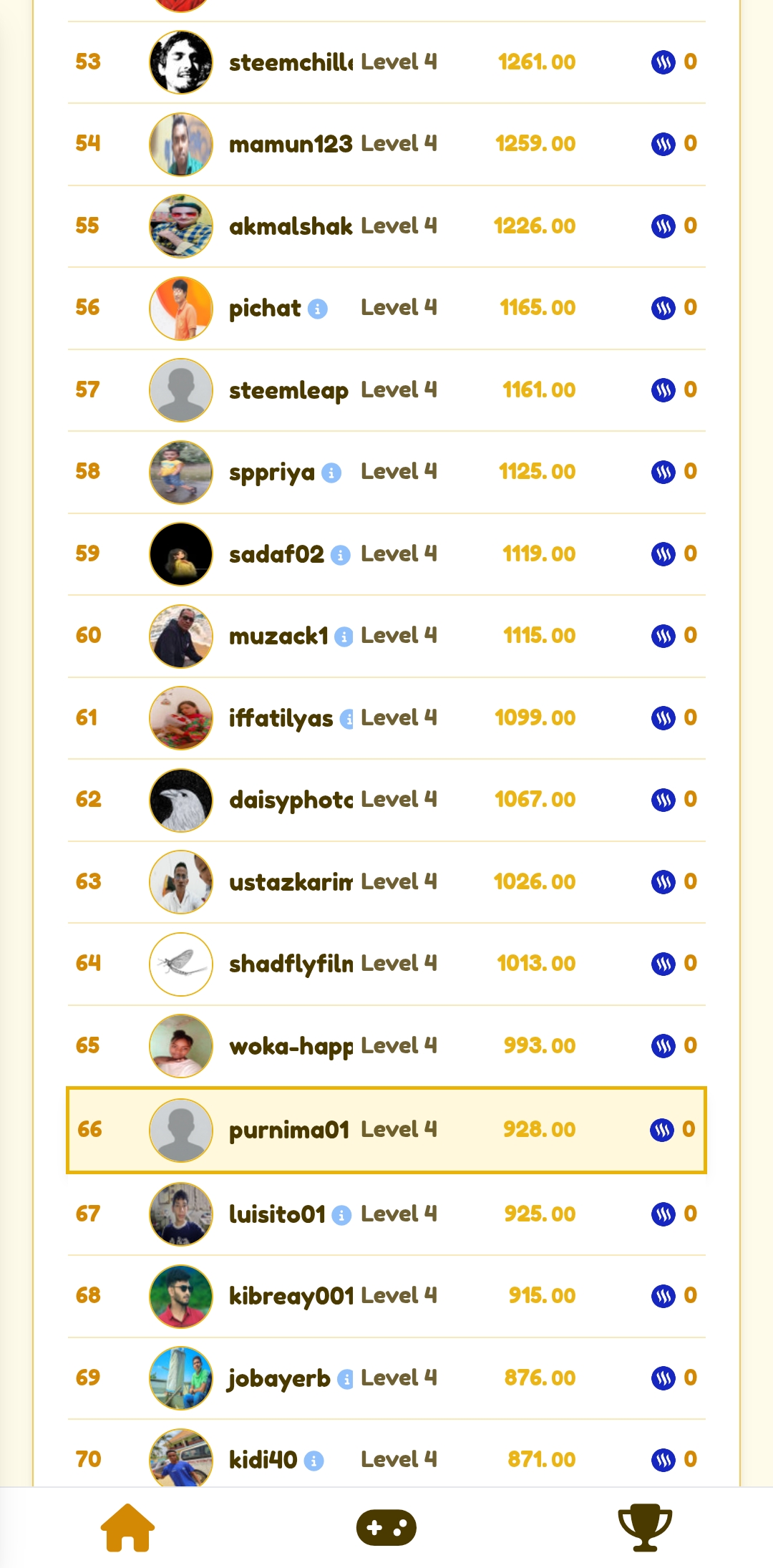 So then I went to the leaderboard. I went to the leaderboard and saw that my position was 66th. Here my level four is shown and my desired points are 928 points. So I feel very good that I could not come to the leaderboard earlier, but today I was able to come.