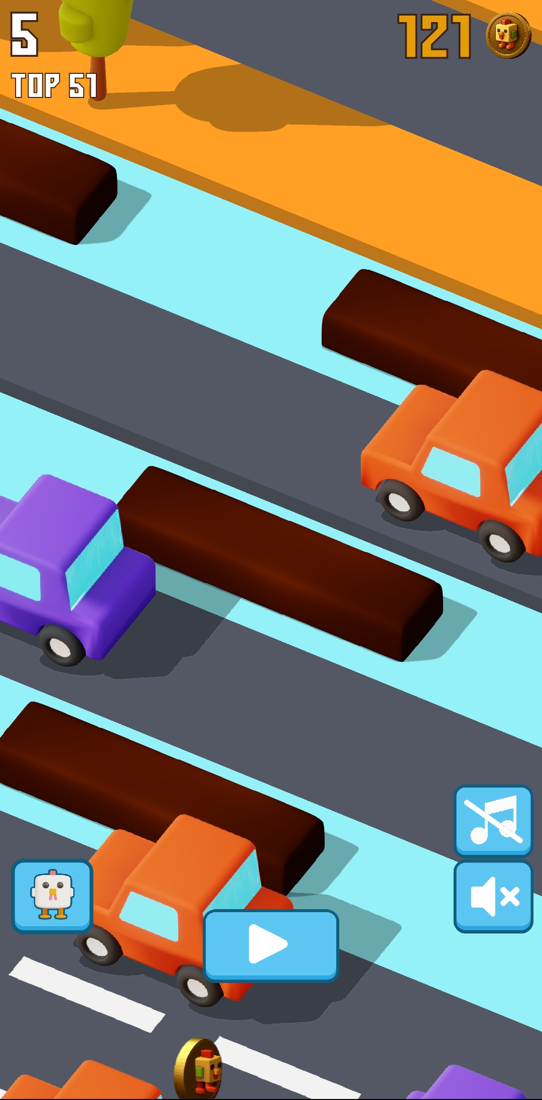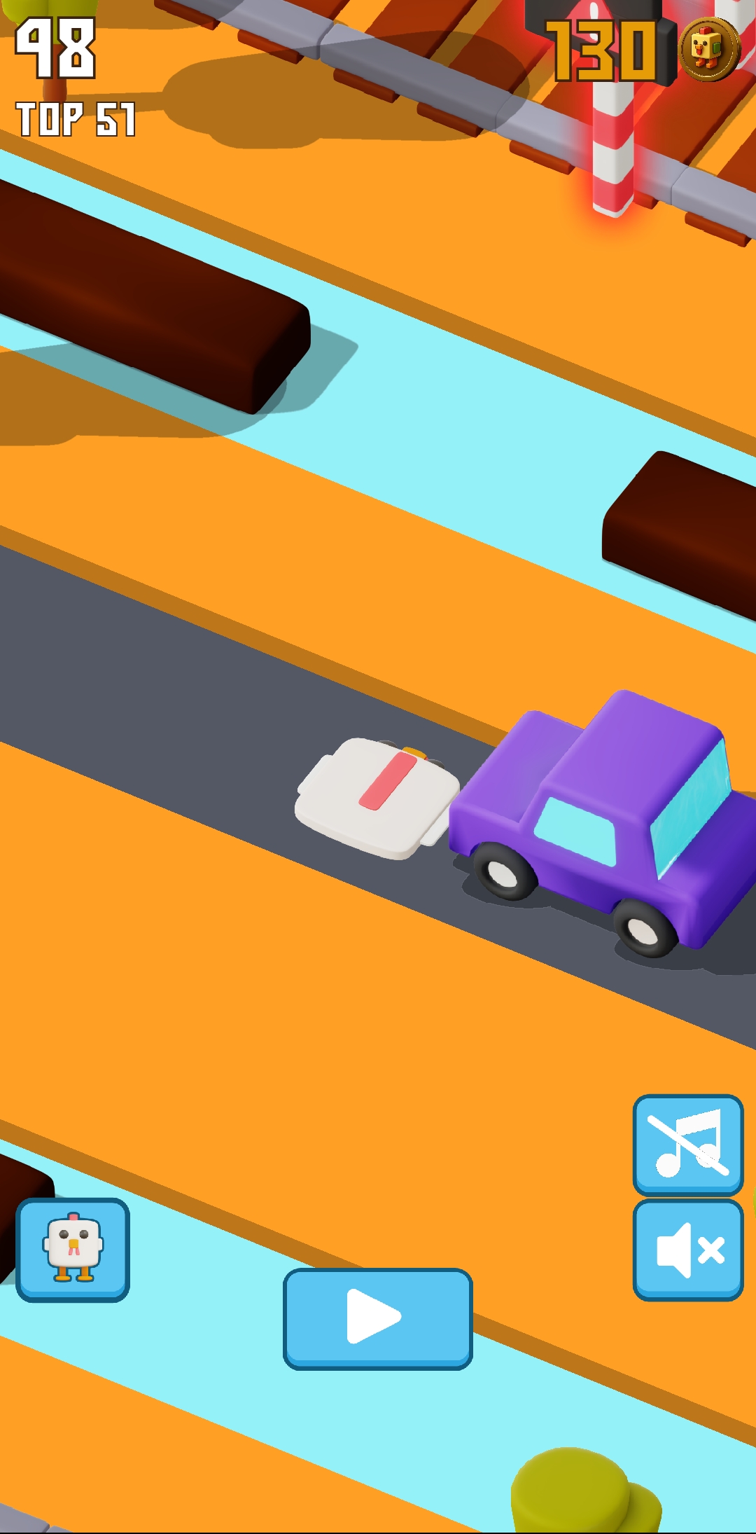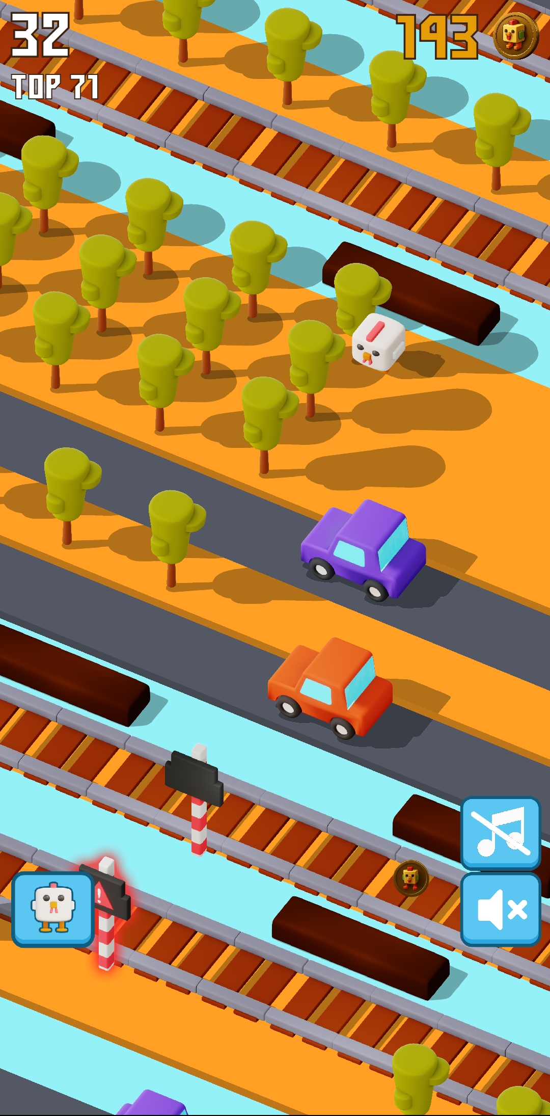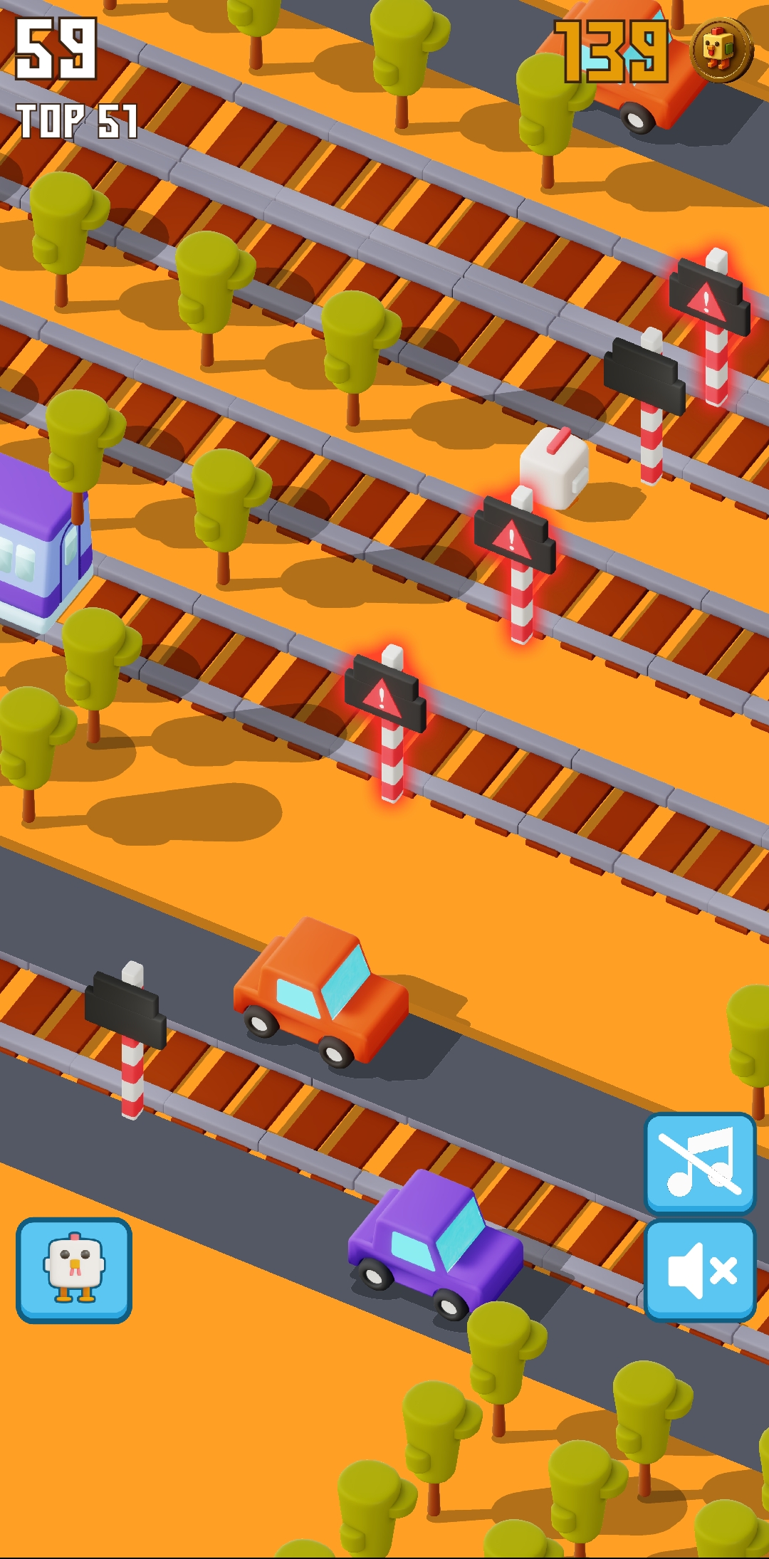 Then I kept playing again. Compared to the other times, I enjoyed playing this time a lot. This time I found about four rail crossings at once. So when I went to the middle of the rail crossings, I saw that every traffic light was showing red, meaning a train was coming here. So at this point I was out again. Here I was able to collect about 8 more points.