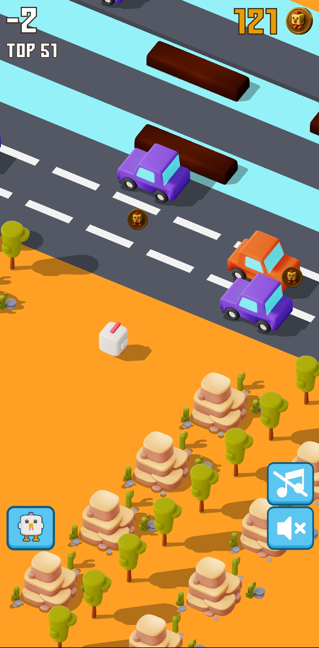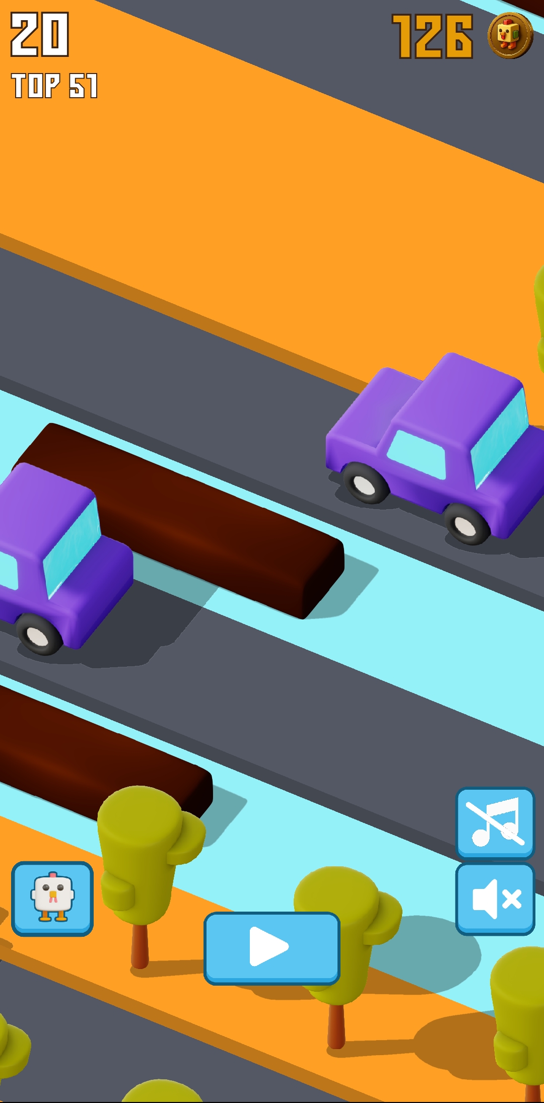 So I started playing like this again. I crossed the road, crossed the river, then crossed the railway line and got out again. And this time I basically collected two more points or got two points.