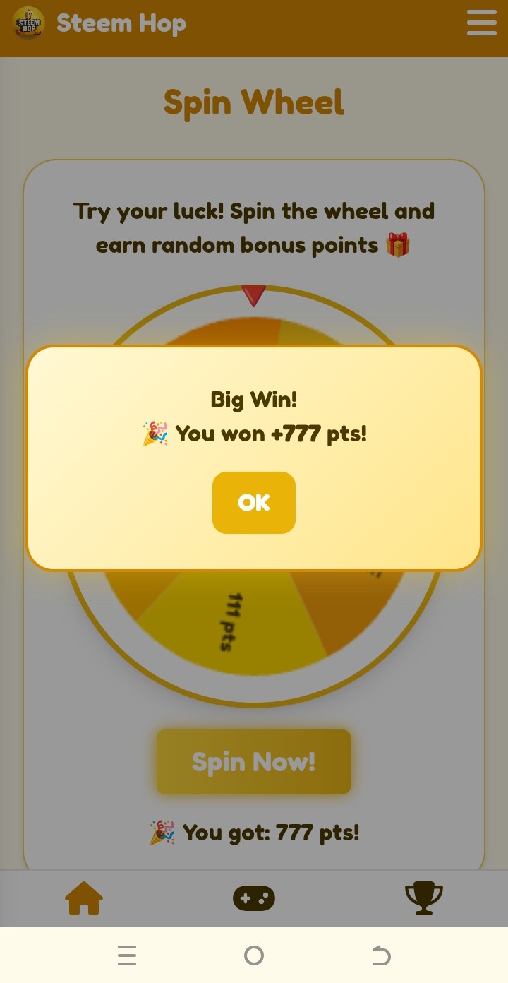 Hoy nuevamente luego de haberme iniciado en el juego fui de una vez a probar suerte en la ruleta y si que fue de mucha suerte ya que otra vez obtuve el máximo valor que se puede lograr al girar la ruleta 777 puntos, otras veces hasta giraba la ruleta sin suerte al no obtener puntos