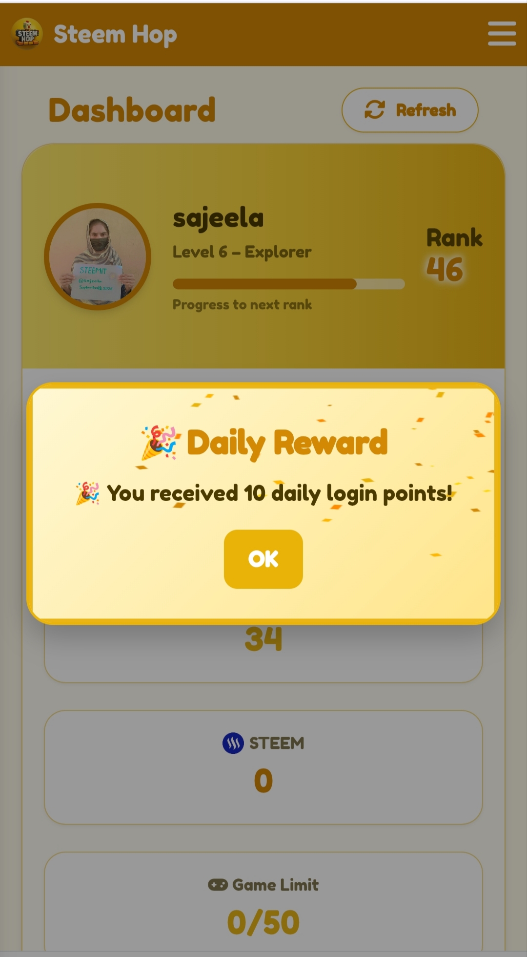 Assalamu Alaikum, I hope all of you brothers and sisters are well. Today, when I was free after doing housework, I thought I would post about the game Steam Hope. As soon as I opened the game on Steam, the first thing I did was click on the dashboard option and I got 10 points.
