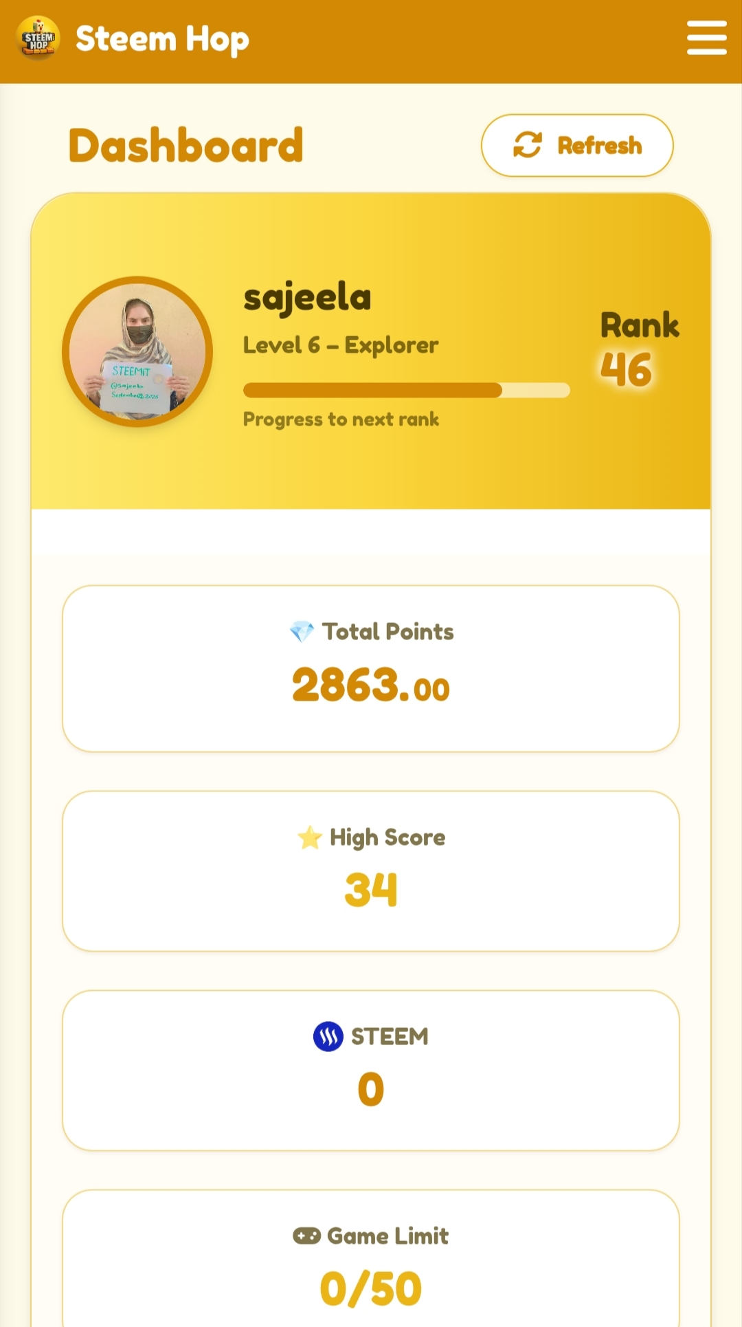As you can see, my rank in this dashboard is 46.Total points are 2863 and my high score level is 34. I want my high school level to be as high as possible so that I can get maximum points and post well.