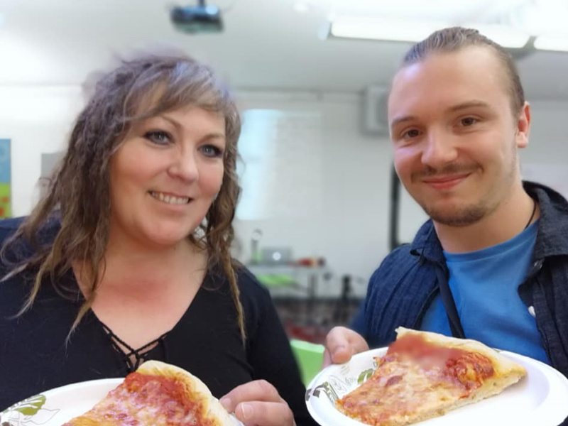 Michel and Rhonda at a Bitcoin Pizza party in Long Island, NY, to celebrate the anniversary of Bitcoin's famous 80 Million-Dollar Pizza.