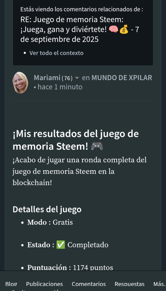 Una vez terminado el juego, me fui como siempre a mis comentarios, aparecen reflejados en la comunidad de Xpilar y se puede constatar que son los mismos resultados arrojados al final de juego.