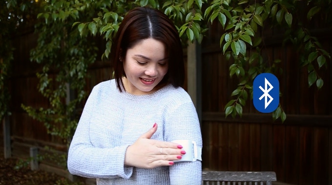 By tapping a tag MUV sents a bluetooth signal to your smartphone that answers incoming calls or starts recording.