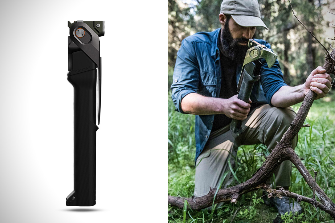 In one tool, you can pull out an axe, hammer, saw, knife and a spade.