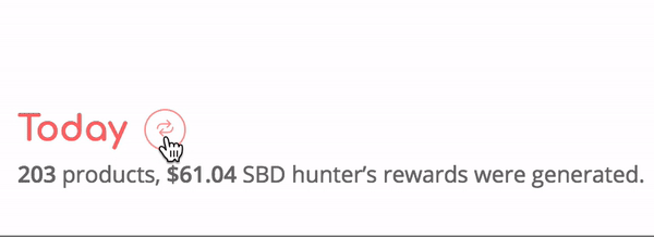 Every user can win from 10 to 200 HUNT tokens once a day by clicking the shuffle button on the “Today” tab. You can try your luck at the shuffle button slot machine (the winning amount will randomly range from 10 to 200 tokens). Every user is eligible to run the lottery one time per day based on KST, and the winning tokens will be directly registered in your wallet transactions.