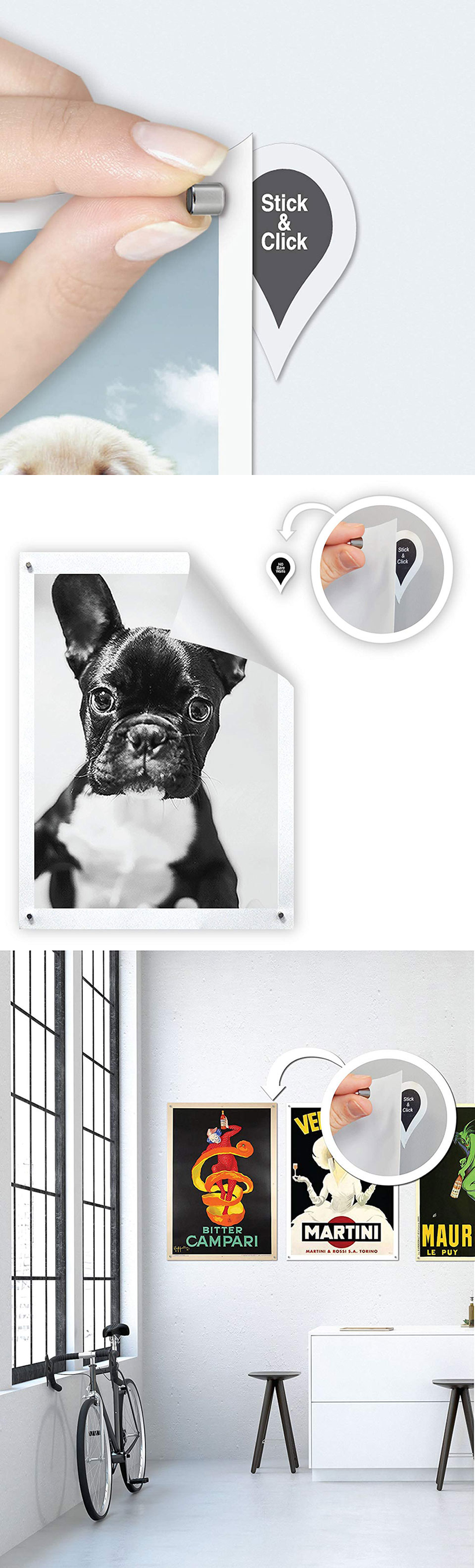 Meet the GoodHangups this tool can turn your walls, windows, cabinet or even your doors into a magnetic board they are simply easy to use just place the magnetic receptus sticker on the wall, place your thing and just simply add the magnet it's that so easy and very attractive.
