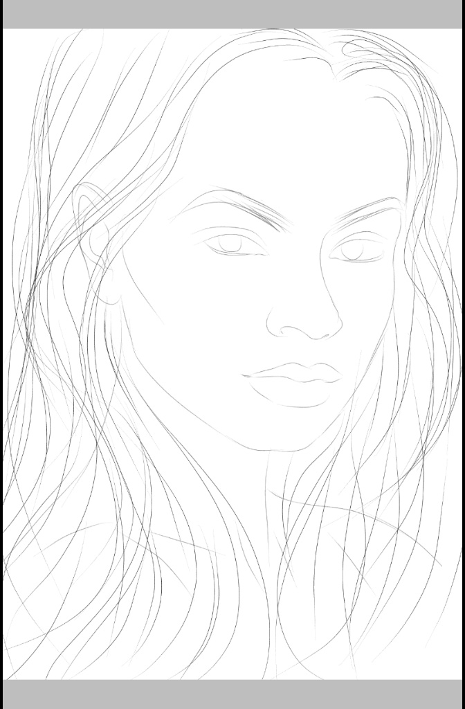 Empecé por fijar líneas guías, para dar origen a las partes principales del rostro: