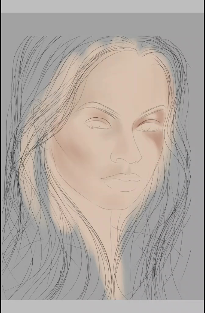 I added base colors and shadows to your skin, I usually use pale colors for your base and a dark color for your shadows then I adjust saturation tones to adapt to the scene I want, the coloring process I did with the rough brush: