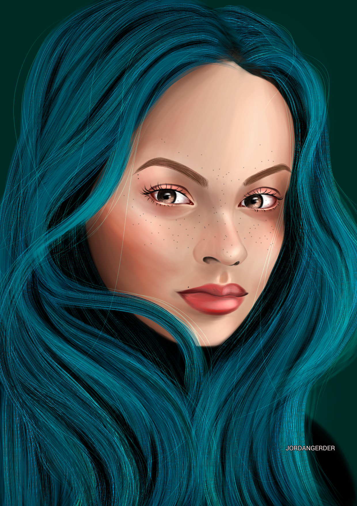 Saludos artistas y amantes del arte, estoy de regreso, me sentía un poco indispuesto en cuanto a mi salud pero ya un poco mas recuperado, decidí regresar a lo que me gusta, hoy un hice un retrato de fantasía, un cabello azul, me gusta el cabello azul, lol....