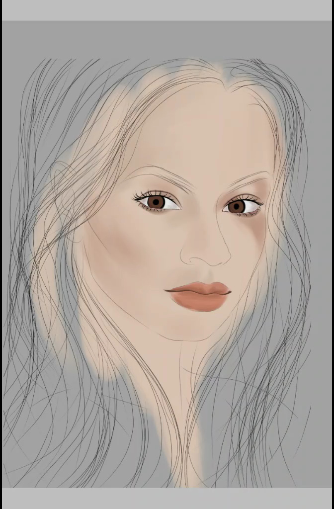 For that voluminous hair, I used the brushes, oil hair, light hair and strong feather, initially I created it with orange colors and then chose the color tone of my preference: