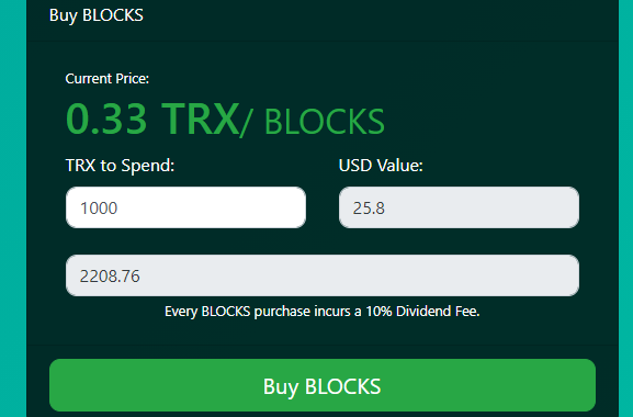 Investment Game 1: BLOCKS. Earn TRX in dividends