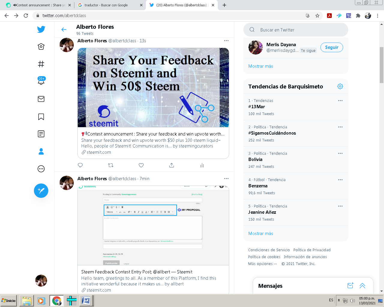https://steemit.com/hive-139293/@allbert/steem-feedback-contest-entry-post-allbert And also I share the contest post and my entry post on my social media account.Greetings dear @steemingcurators