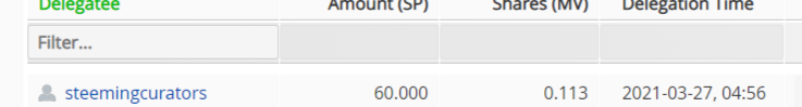 Already 60 sp delegated. I hope we all grow together and support each other. Thanks for the article @steemingcurators was very helpful.