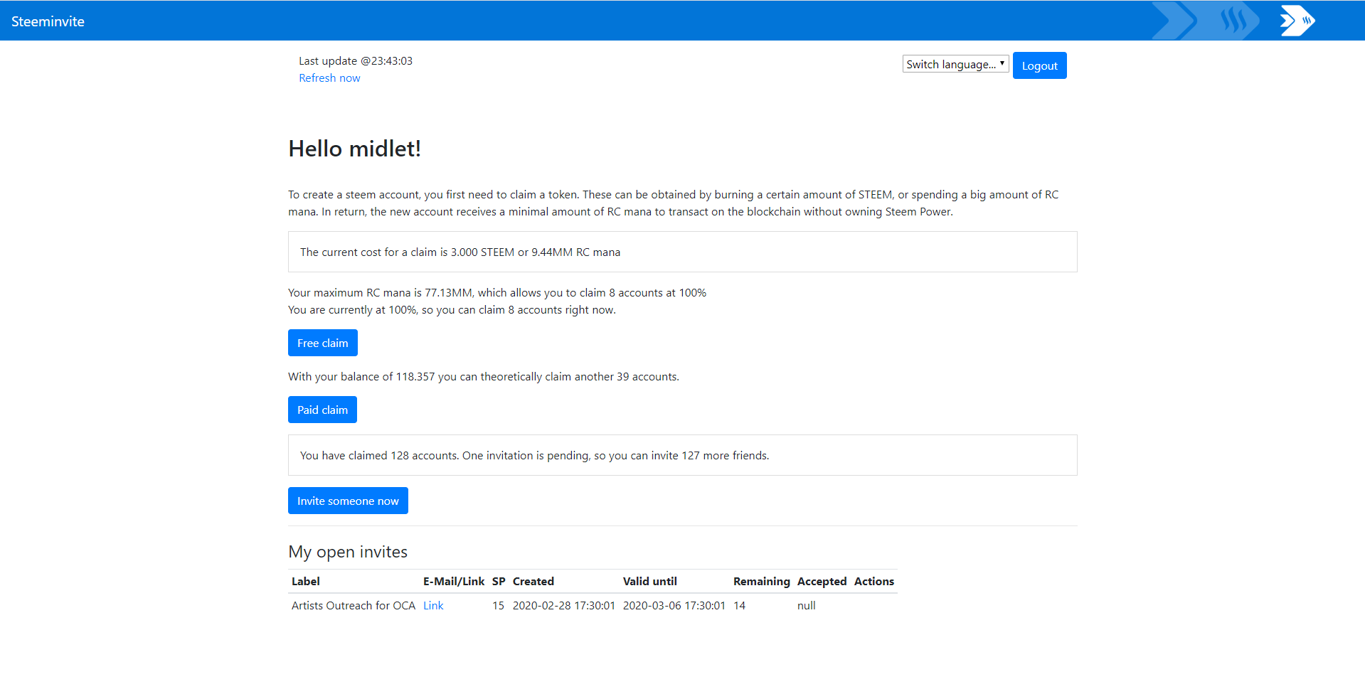 I've known about Steeminvite for a long time, but I've just started to use it. Up until now I haven't been all that confident about inviting people to Steem to be honest, but with Communities out I'm ready to start bringing people on.